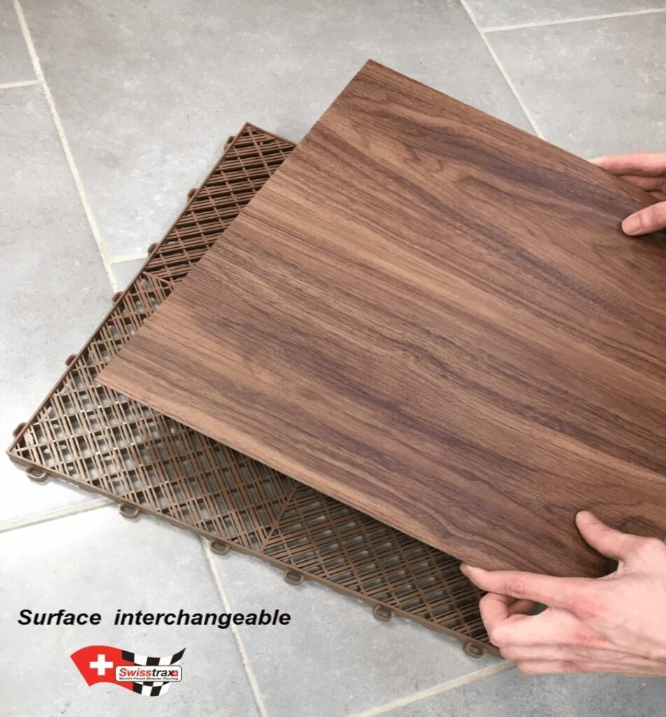 Vinyltrax Pro bietet die legendäre Leistung der modularen Swisstrax-Fliesen mit einer realistischen Holzoptik.